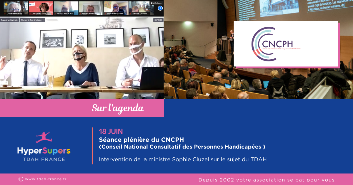 - HyperSupers TDAH France est membre du CNCPH, participe à différentes commissions, la commission santé , la commission scolaire + d’info