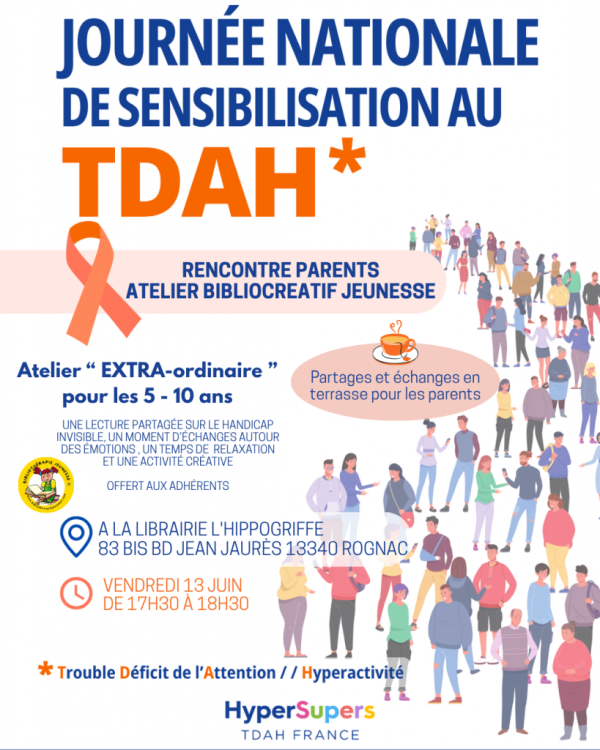 Dans le cadre de la journée nationale de sensibilisation au TDAH, l’association les Amis de la Médiathèque de Rognac, propose aux enfants de 5 - 10 ans un atelier bibliocréatif autour du handicap invisible et de la différence.