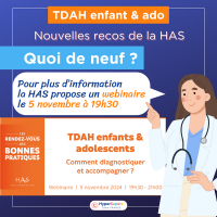 La HAS est heureuse de vous inviter au rendez-vous des bonnes pratiques « TDAH enfants & adolescents : comment diagnostiquer et accompagner ? » le mardi 5 novembre 2024, de 19h30 à 21h00.